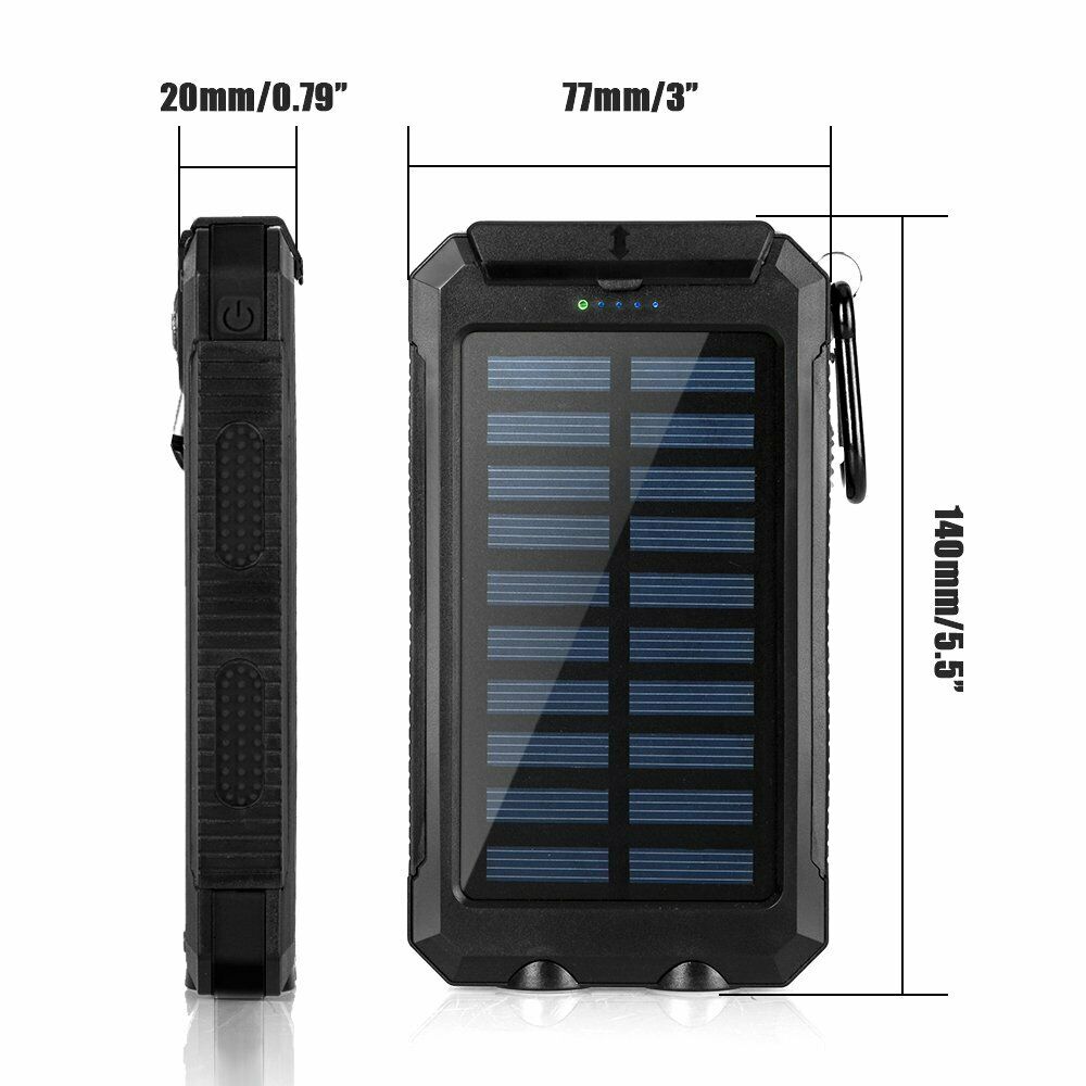 • High Capacity Portable Solar Power Charger: Built-in 20000mAh high capacity Lithium battery equipped with a high performance solar panel, anti-explosion, lightweight and reliable. Long lifespan with more than 1800 recharging times. which could recharge the battery itself under sunlight, eco-friendly and ideal for outdoor use.Made of durable and resistant ABS+PC Material which protect it from rain, dirt and shock.